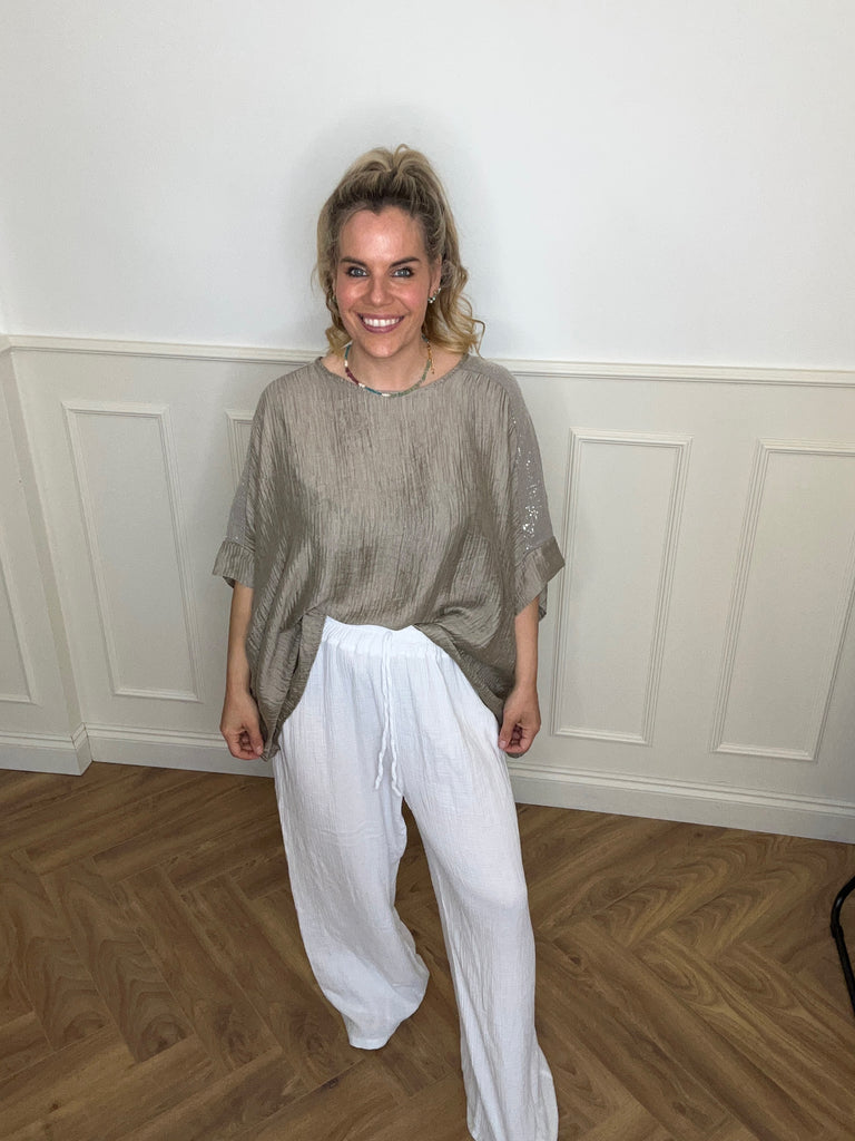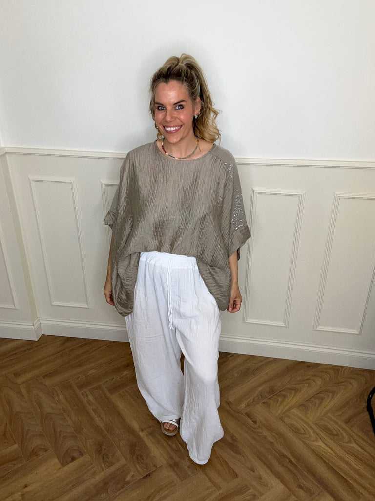 Our gorgeous top is the perfect addition to your summer wardrobe. Teams well with our cheesecloth trousers.